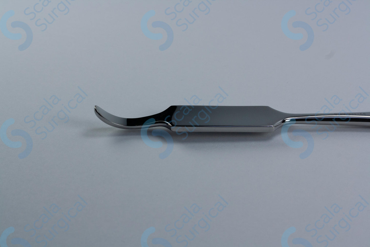 A Watson Jones Bone Elevator is a surgical instrument used to elevate and retract bone fragments during orthopedic surgery. It has a solid forged handle and is polished for easy handling. The length of this particular model is 282mm (11?inch).