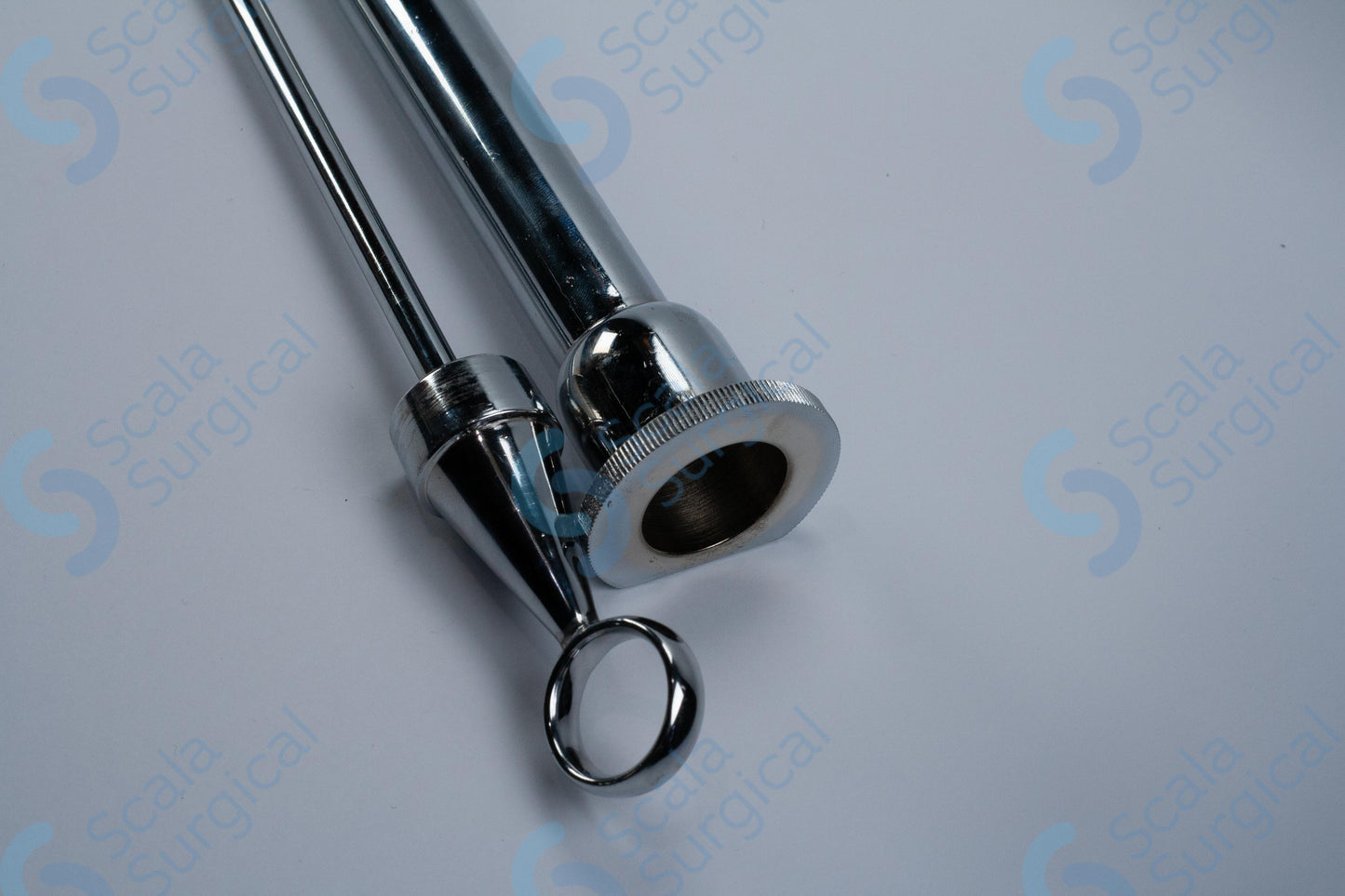 A sigmoidoscope is a type of endoscope used in the surgical field to examine the sigmoid colon, which is a part of the large intestine. It is a long, flexible tube that has a light and a camera at the end. The adult size sigmoidoscope measures 19mm x 300mm. It is used to help diagnose conditions such as diverticulitis, ulcerative colitis, and polyps.