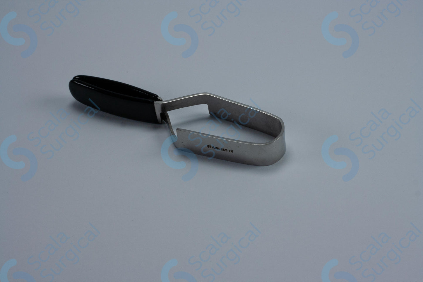 The Thomson Walker Penile Clamp Cross Action Handle With Isolation is a surgical instrument used to clamp the penis in order to control blood flow during a procedure. It is typically used during urological and gynecological surgeries.