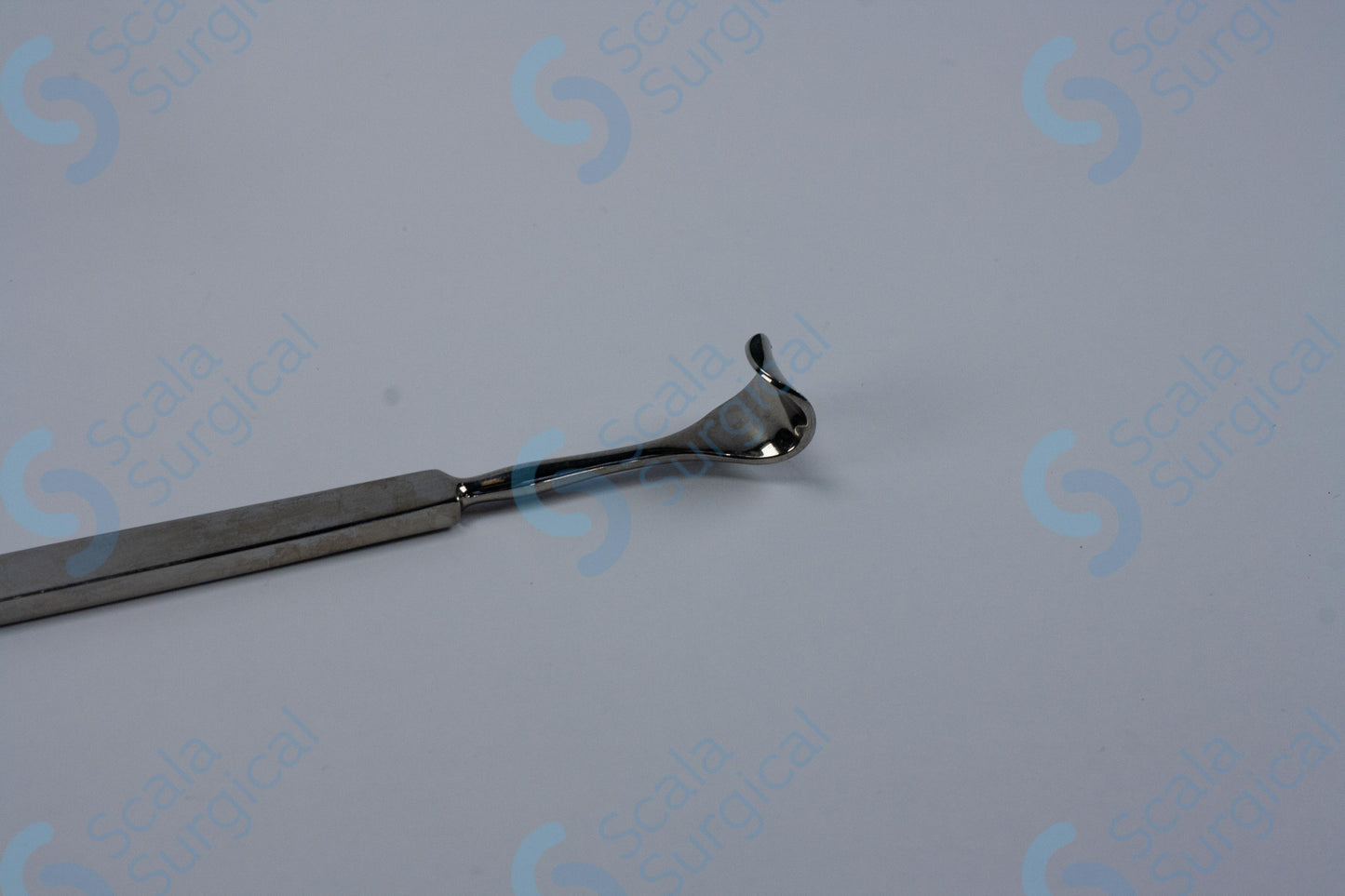 The Desmarres Eye Lid Retractor is a surgical tool used to hold the eyelid open during an eye procedure. The retractor is inserted between the eyelids and the blade width of 14mm ensures that the lids remain open, allowing the surgeon to clearly view the eye during the procedure.