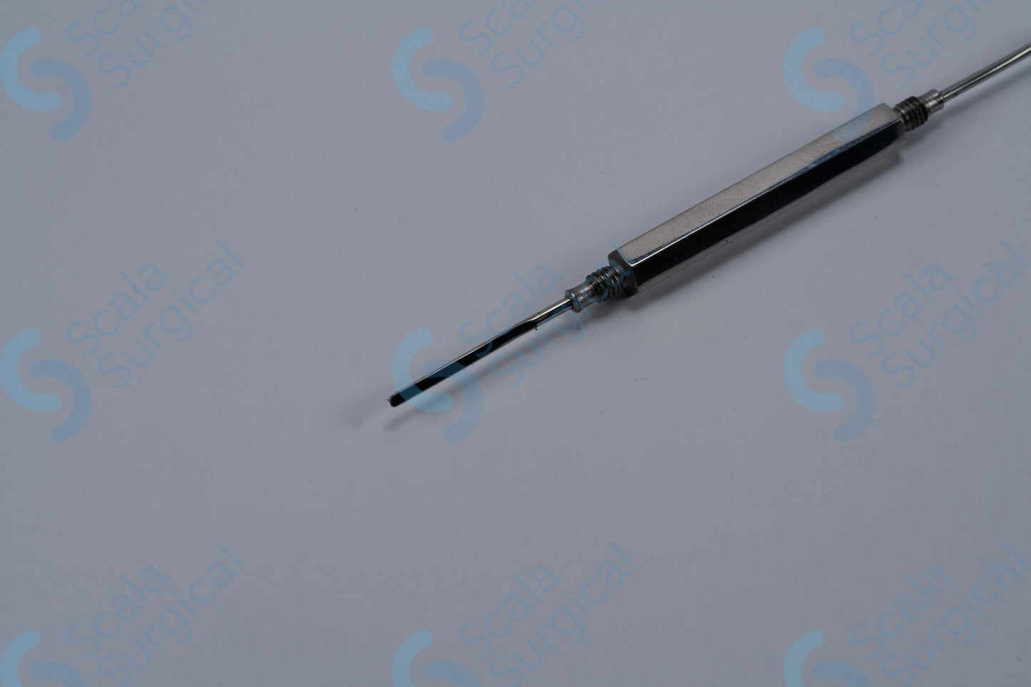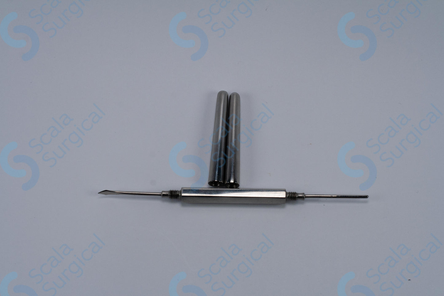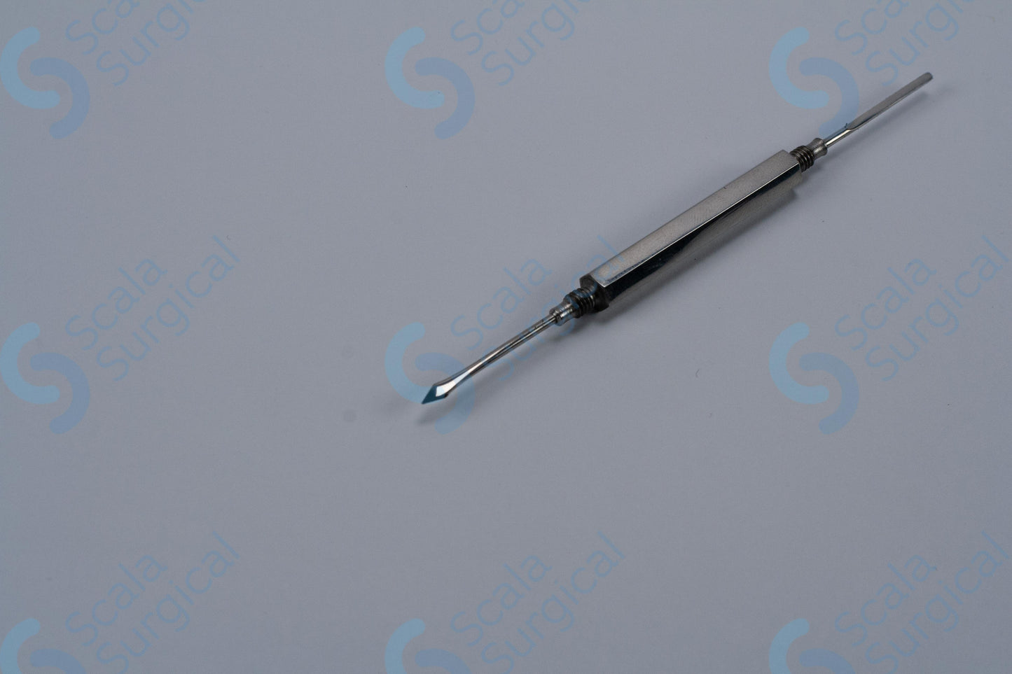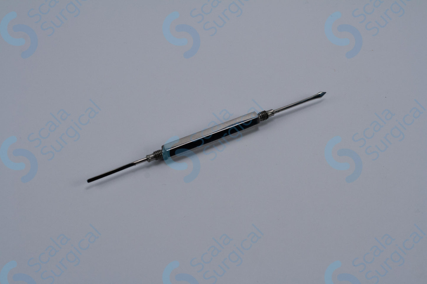 An ophthalmic spud and needle holder is a surgical instrument used by ophthalmologists to perform delicate eye surgeries. The spud is used to hold and manipulate sutures and needles during eye surgery, while the needle holder is used to hold and maneuver the needle during the procedure.
