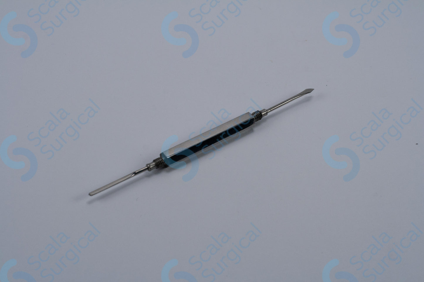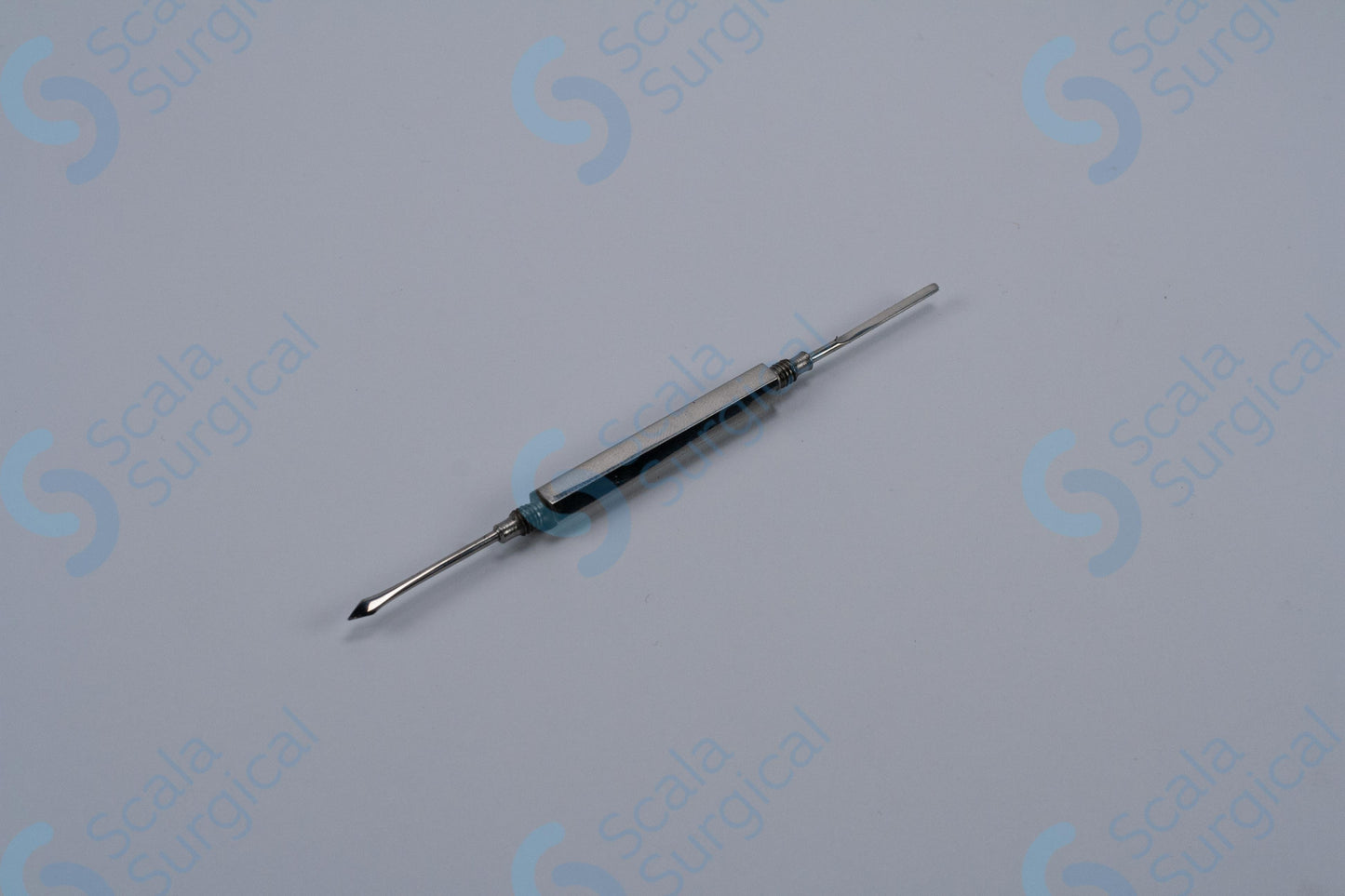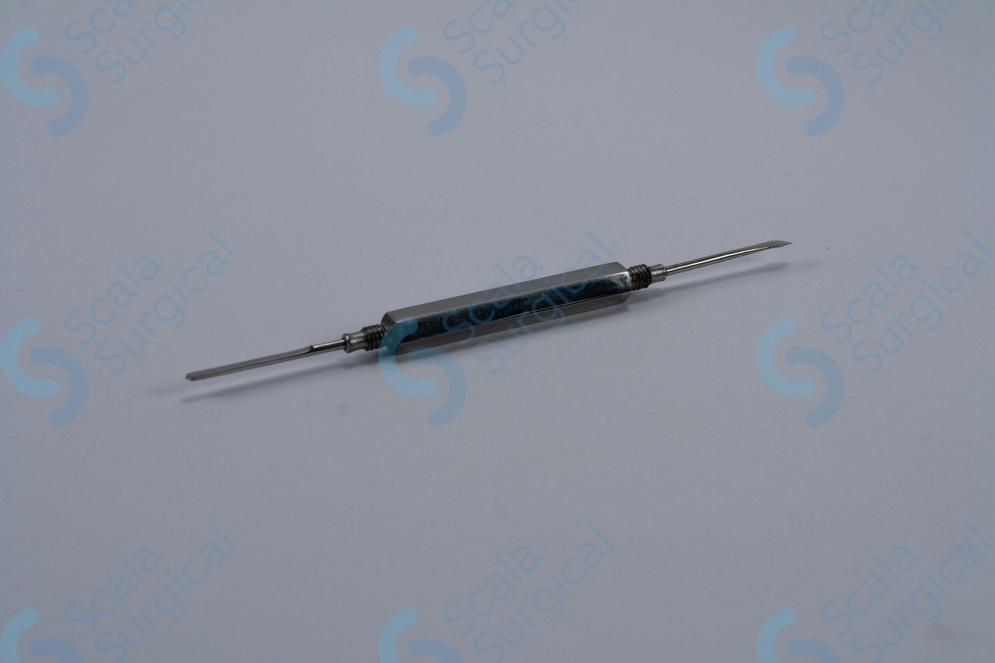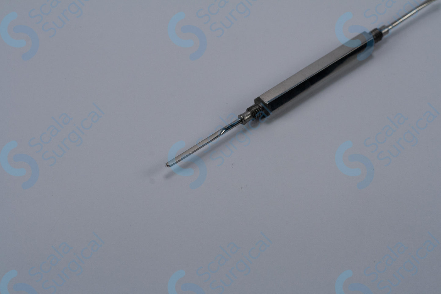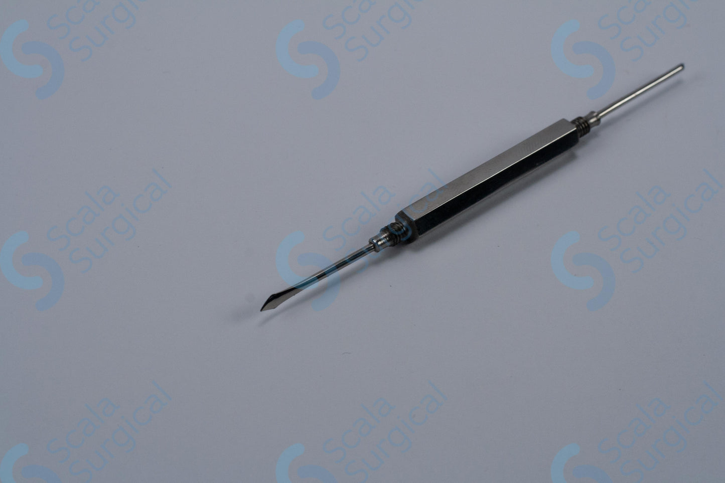 An ophthalmic spud and needle holder is a surgical instrument used by ophthalmologists to perform delicate eye surgeries. The spud is used to hold and manipulate sutures and needles during eye surgery, while the needle holder is used to hold and maneuver the needle during the procedure.