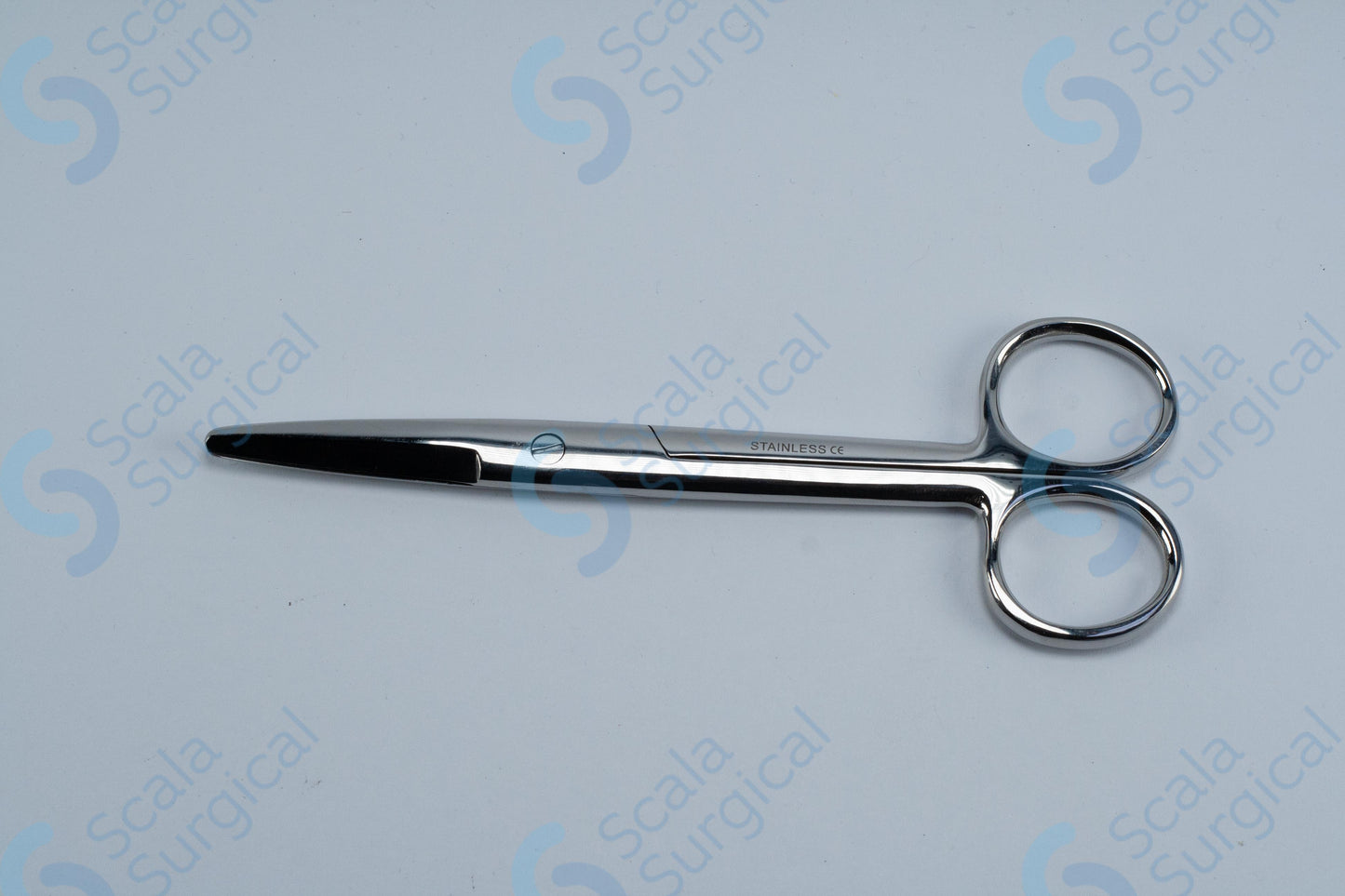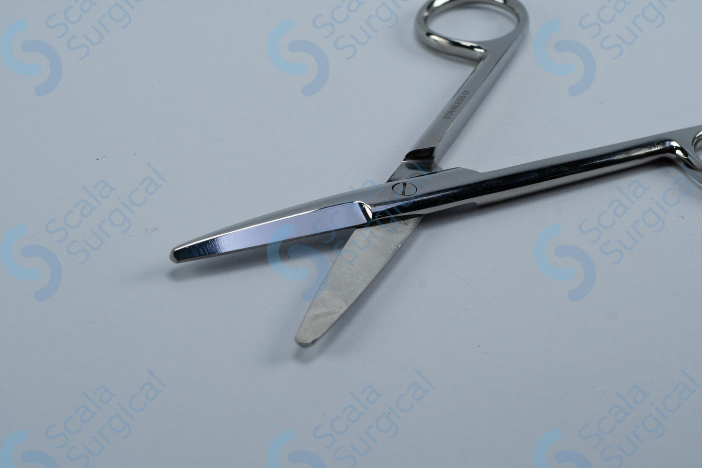 Dressing / Stitch Scissors Blunt/Blunt Straight (146mm) (5? inch) Left Handed are a type of scissors used in the surgical field. They are designed to cut through dressings and sutures without damaging the underlying tissue. The blunt tip on both blades helps to prevent accidental cuts to the patient. The left-handed design makes them easier to use for left-handed surgeons.